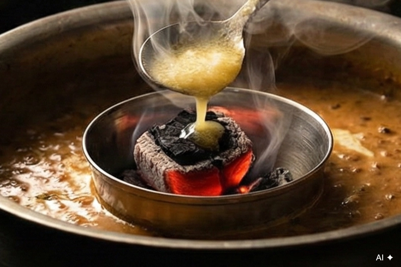 Warm ghee absorbs smoke beautifully. When that smoky fat sits with the dal, the aroma spreads through the entire dish.