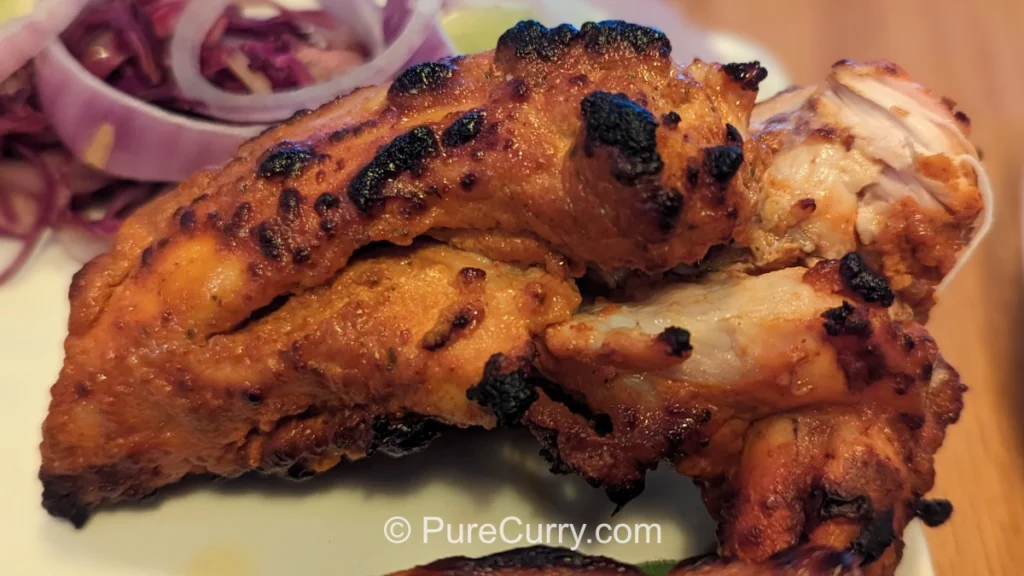 Tradicionalmente, el Pollo Tandoori se cocina en un tandoor, un horno cilíndrico de barro que alcanza temperaturas extremadamente altas. El calor intenso: