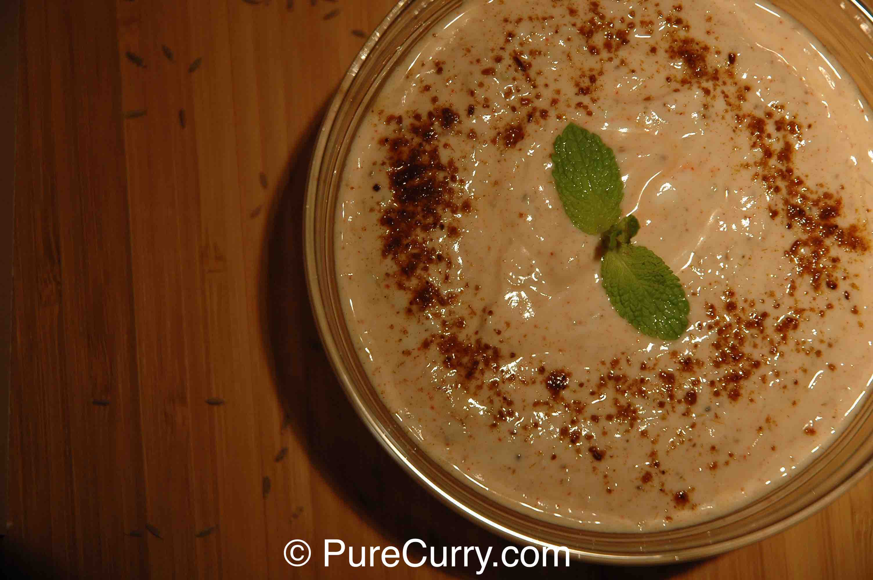 Raita es un yogur indio que se acompaña con verduras crudas picadas o pepino y especias. El polvo de comino asado se combina muy bien con el yogur y es una especia esencial para hacer un yogurt “Raita”.