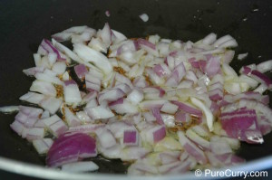 2. When the cumin seeds start to sizzle add the onions.