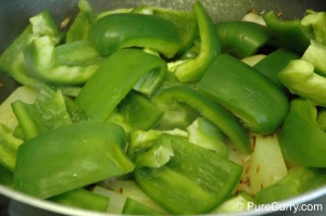 4. Cook the potatoes on medium heat for about 10 minutes and then add the green peppers. Cook uncovered for about 5 minutes.
