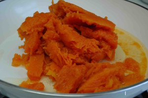 2. When the pumpkin is completely mashed add the sugar and mix well.