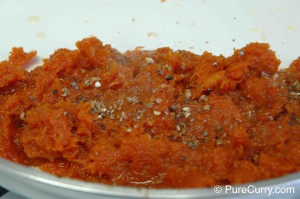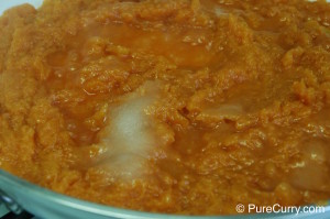 4. A good sign that it’s ready is that the pumpkin doesn’t stick any more to the pan. When that happens reduce the heat, add the cardamom powder, mix well, cook for another minute and take the pan off the heat.